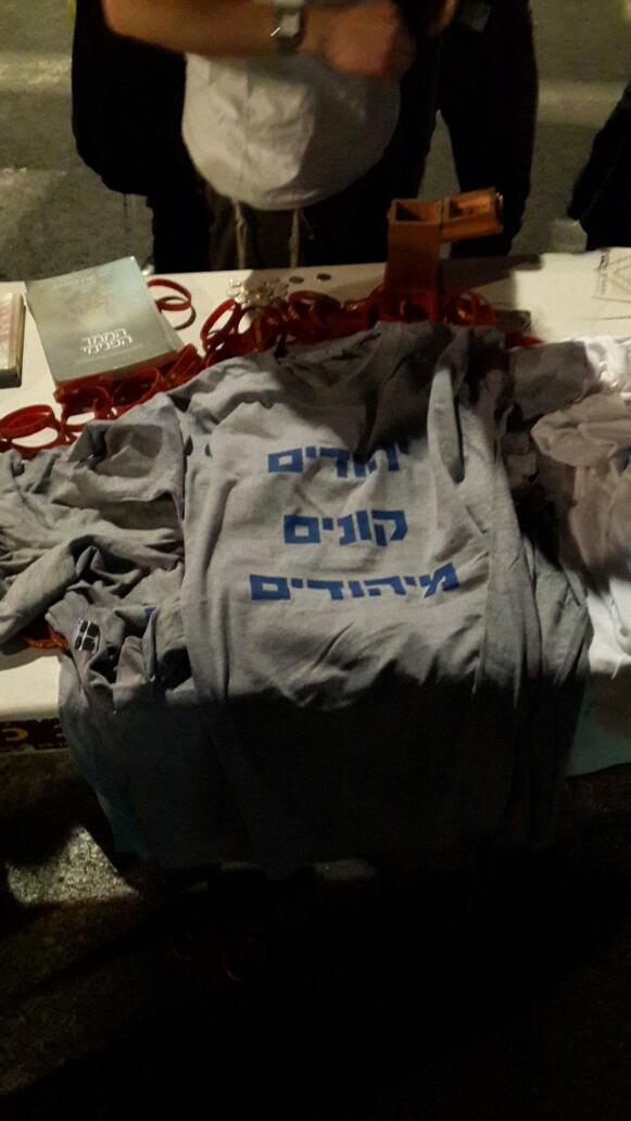 Die national-religiöse Bevölkerung Israels, Israelis aus Judäa und Samaria und solche aus anderen Städten, waren hier zum großen Teil vertreten, die lange Anreise hatte sie nicht abgeschreckt. Jungs mit Kippas rannten durch die Gegend, kleine Kinder in Kleidchen oder mit Schläfenlocken, Mütter mit Kinderwagen,  Gruppen von singenden und tanzenden Mädchen  – in dieser Aufmachung ein sehr seltenes Bild für Tel Aviv. Die letzte Demonstration, bei der dieser Bevölkerungsteil hier in Scharen aufgetaucht war, war im Sommer 2014, zur Kundgebung nach der Entführung der drei Jungen Gil-ad, Eyal und Naftali sel.A. Damals war die Kundgebung kein Verlangen nach Änderungen oder politischer Umwälzung, sondern sollte eine Botschaft des Zusammenhalts und Glaubens an das Gute vermitteln, und hatte auch viele lokale Teilnehmer aufzuzeigen, ohne religiösen oder geografischen Bezug – spich, auch viele aus Tel Aviv, denen die Sache nahe ging.