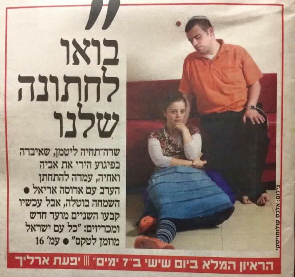 „Kommt zu unserer Hochzeit“ Der Artikel über Sarah Techiya und Ariel in der Zeitung „Yediot Aharonot“