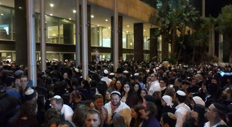 Die Menschenmenge vor dem Eingang. Foto: Chaya Tal