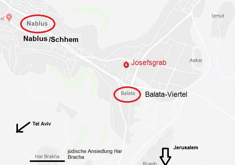 Drei Juden aus Israel, die am Josefsgrab inmitten der arabisch-palästinensischen Stadt beten wollten, gelangten nachts in die Stadt. Jüdische Pilger haben nach einem Abkommen mit der Armee bestimmte Zeiten und Tag(e) in der Woche, an denen sie zum