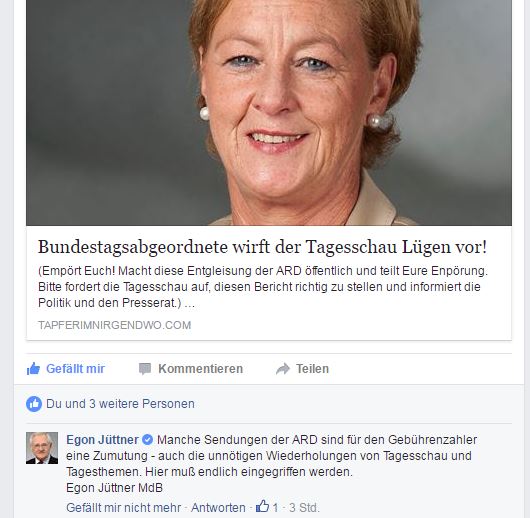 Dieses Zitat, welches später von Schauspieler Gerd Buurmann in seinem Blogeintrag bei „Tapfer im Nirgendwo“ übernommen worden war, wurde in der Stellungnahme des ARD bestritten – lächerlicherweise haben die Autoren der Stellungnahme sich nicht die Mühe gemacht, die Kommentarspalte der eigenen Sendung zu durchzulesen und so die Authenzität der Rückmeldung der Abgeordneten zu überprüfen. Armutszeugnis, insbesondere angesichts der Tatsache, dass alle Kommentare als Benachrichtigungen bei den Webadministratoren auftauchen.