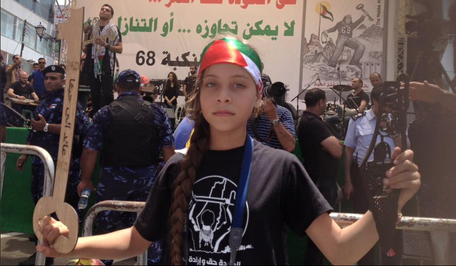 Demonstrationen geschickt wird, mit fünf Jahren Soldaten in Uniform anbrüllen soll. Die ihre „Karriere“ als Mediastar mit offiziell mit dem siebten Lebensjahr beginnt, als sie in Leggins und T-Shirt und wahlweise Keffiya und Palästinaflagge vor der Kamera posiert und Slogans gegen Israel aufsagt.