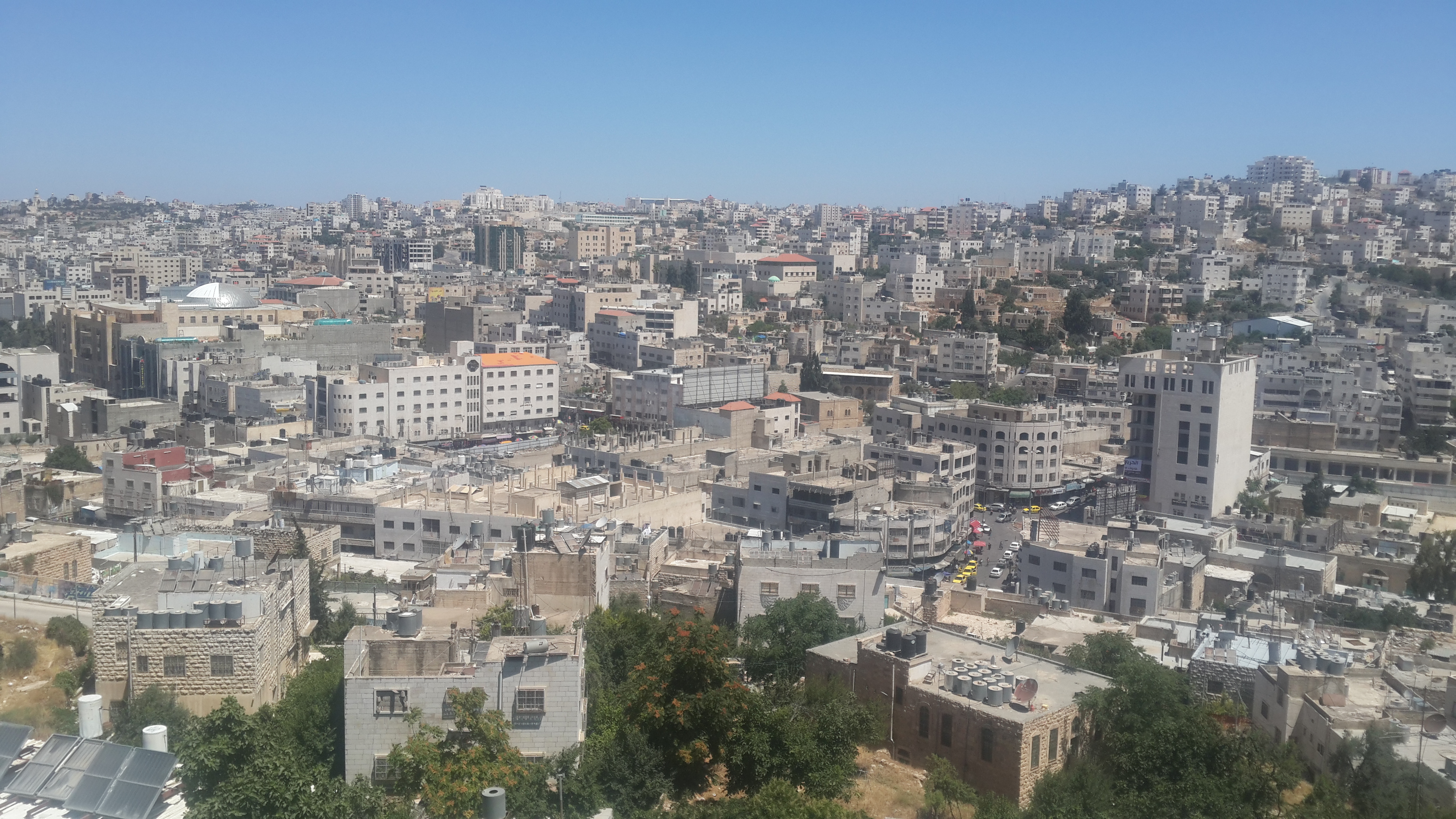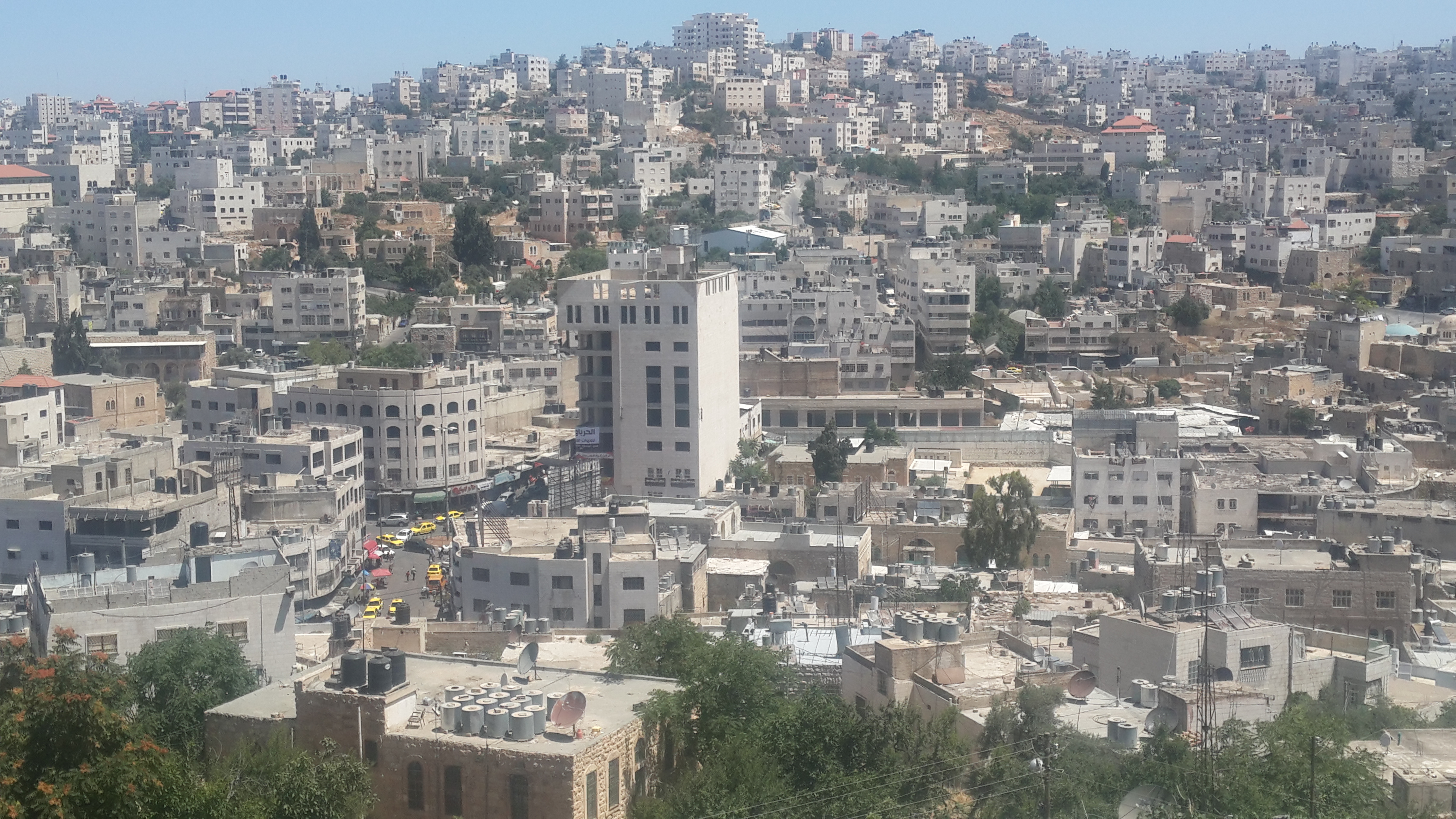 Arabisches Hevron, links unten – Taxistände, Grenze des Verwaltungsbereiches der israelischen Armee.
