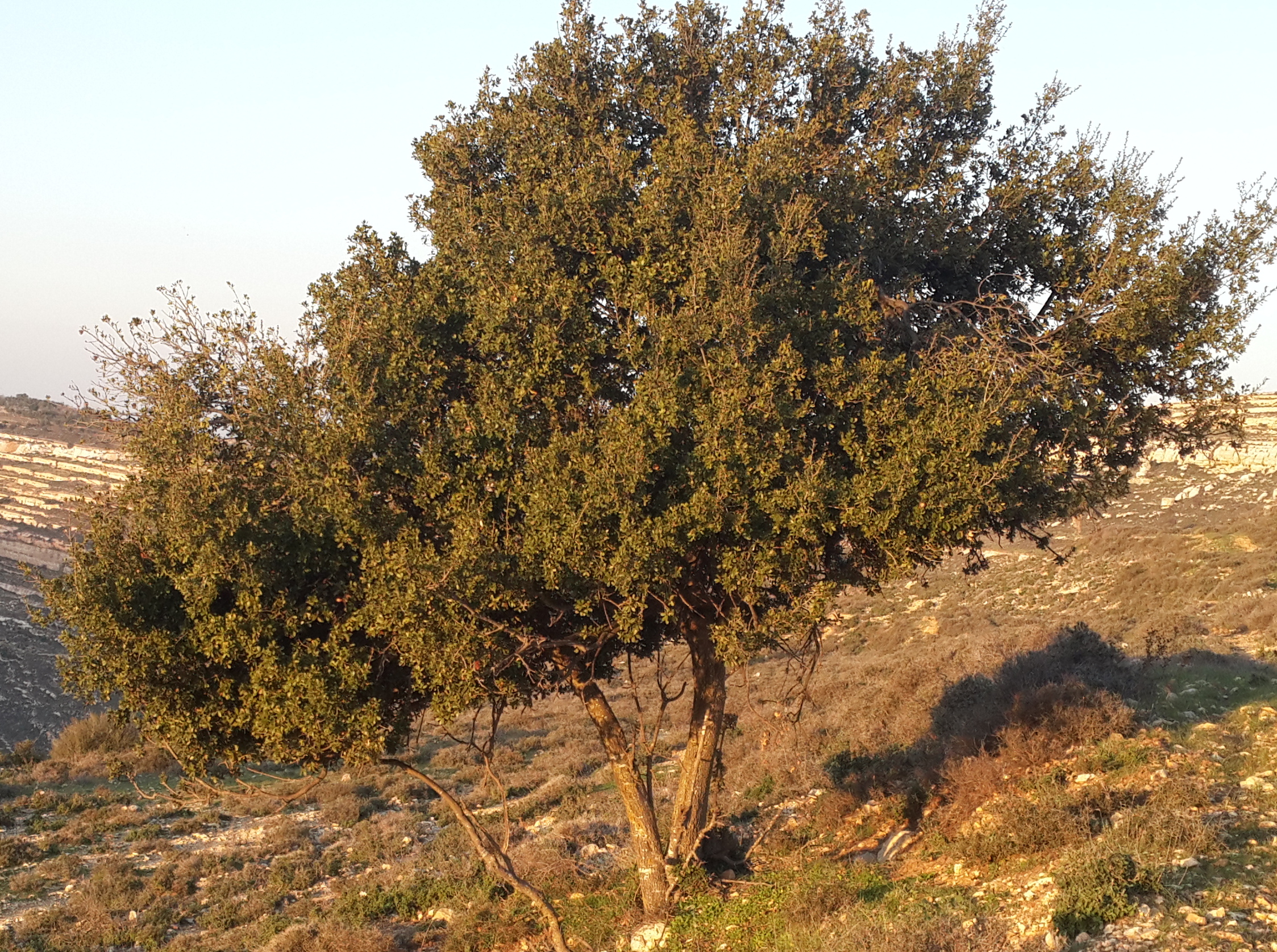 Eichen? Auf Hebräisch „Alon אלון“ genannt, sind diese Eichen gänzlich anders, als man sie von Europa gewohnt ist. Klein, buschig, stachelig, und eines der wenigen Baumarten, die zu diesem Klima und zu dieser Landschaft ursprünglich gehören.