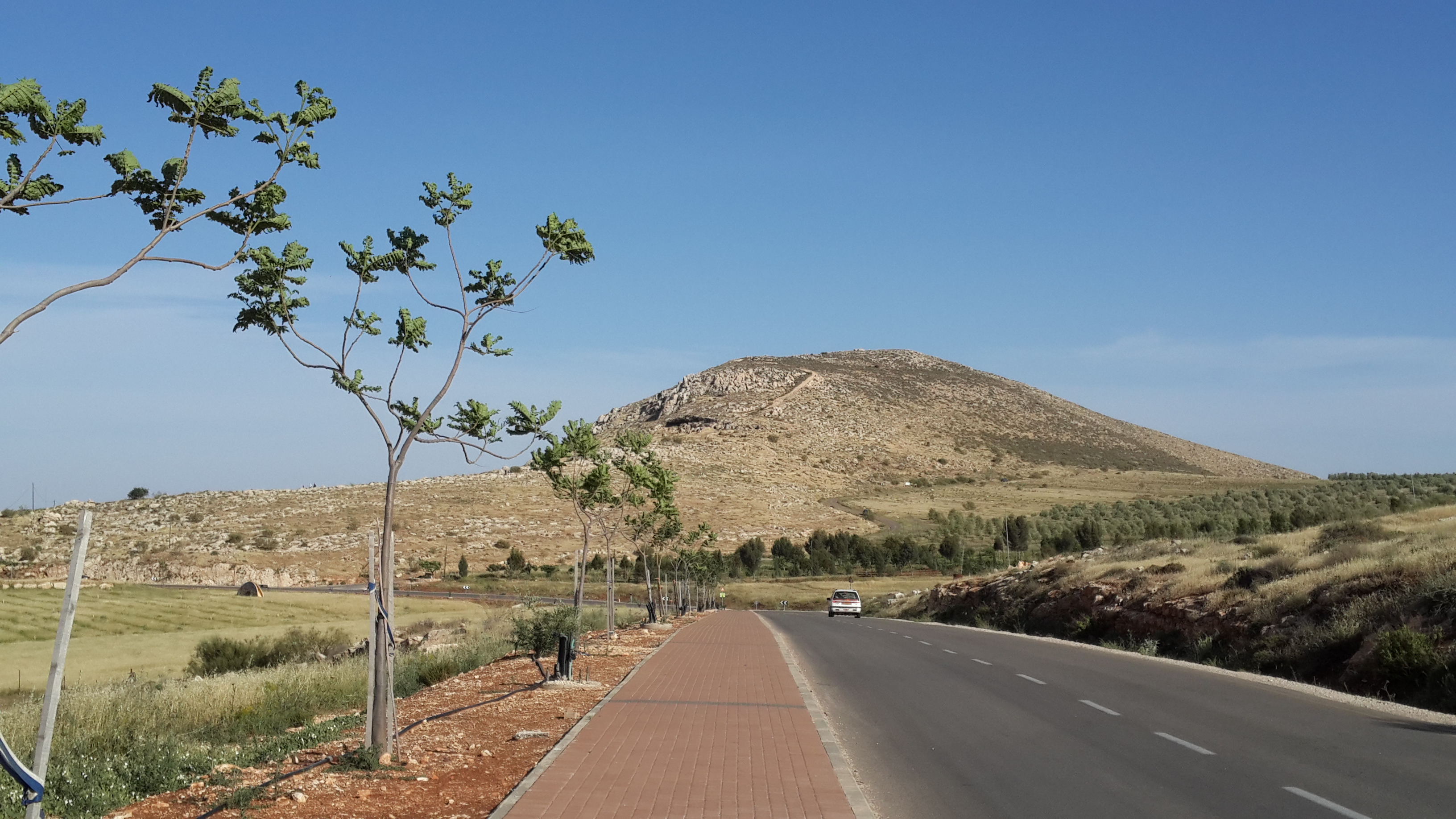 Die Natur verändert sich auch. Die wüsten und steinigen Hügel Ost-Binyamins, welche kaum Vegetation besitzen, weichen Bäumen und Olivenplantagen, welche den lokalen arabischen Grundbesitzern gehören . Es wird grüner. Ein Verkehrsschild weist darauf hin, dass sich hier in der Nähe die „sagenhafte“ palästinensische Metropole Rawabi befindet, ein Großprojekt der Palästinensischen Autonomiebehörde, welches allerdings keine konkrete Förderung erhält und daher eher im Stocken zu sein scheint, als tatsächlich eine Alternative für die arabischen Dorf- und Stadtbewohner zu bieten. (Mehr über Rawabi kann man hier nachlesen). Wir fahren auch an der wunderschönen Gebirgslandschaft um die Siedlung Ateret herum vorbei.