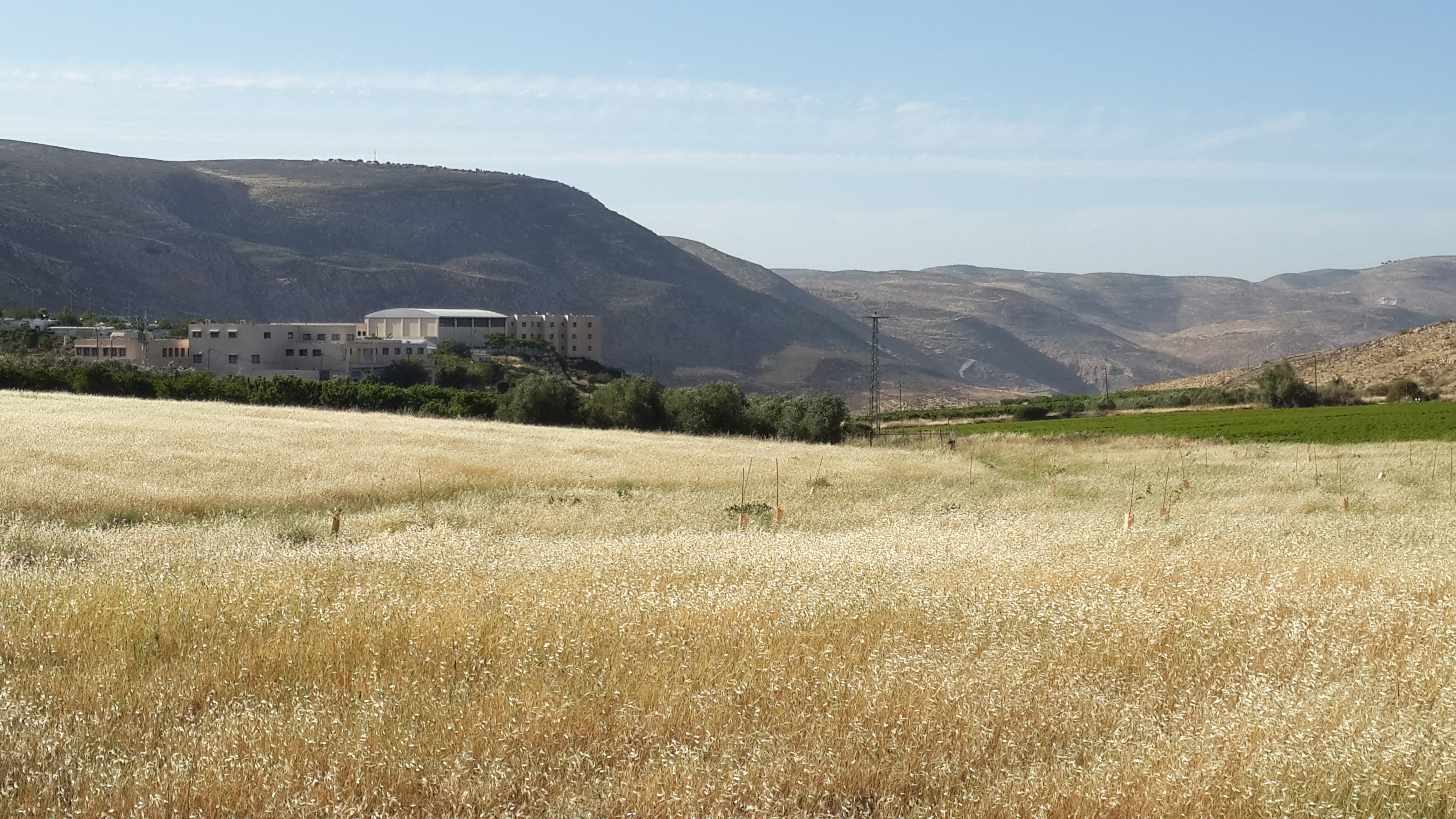 Wadi Wahita unter uns sich durch die Berge Richtung judäische Wüste bahnt, konnte man den drastischen Unterschied zwischen den Felsformationen der zwei aneinander grenzenden Regionen erkennen und es faszinierte mich. Auf den Bildern kann man dies genau erkennen. Die Felsart der judäischen Wüste ist viel weicher als die der Binyamin-Berge, lässt sich einfacher verformen. Die Erde des Jordantals ist sandig und lässt eine völlig andere Art der Agrikultur zu als die auf den Bergen (im Jordantal werden größtenteils Dattelplantagen angebaut). Im Hintergrund sieht man die jordanischen Berge und weiter unten spannt sich Jericho aus.