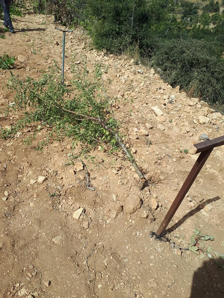 Am 14.06 aber stellte sich der Schaden als relativ „erträglich“ heraus – im Vergleich zu den 169 Weinpflanzen und einem Olivenbaum, die in der Morgenfrühe auf zwei Feldern des Bauern Abu Jamil aus dem