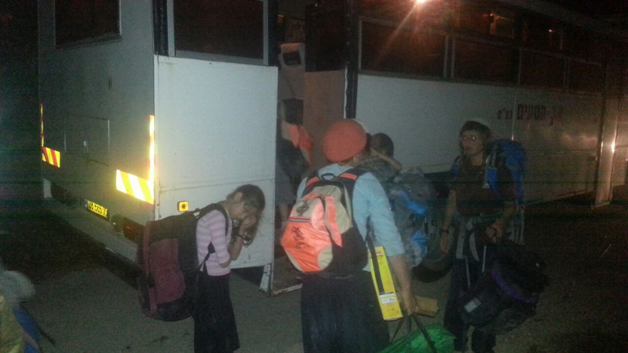 Auch wird niemand vom Dach geworfen. Rabbiner Gadi folgt den Polizisten, wird aber von der Gruppe weggedrückt. „Wir wollen nicht, dass du hier dabei bist“, sagt ihm einer, und drängt ihn zu Seite. Die Jugendlichen schreien, wehren sich aber nicht aktiv. Einige werden einfach abgeschleppt, andere bekommen allerdings Pfefferspray ins Gesicht – als Warnung, Abschreckung, oder wofür auch immer. Jeder wird einzeln zu großen Bussen in Form von Lastwagen gebracht. Bei dem Ausgang aus der Festung, aus welcher man die „Aufständischen“ zu den Bussen schleppt, stehen Journalisten parat, filmen und knipsen. In einem Bus befinden sich auch ein paar Mädchen, die zurückgeblieben waren. Unter den Sicherheitskräften sind ebenso junge Frauen anwesend. Die Luft füllt sich mit dem Reizgas, jeder mit Pfefferspray Angegriffene bringt es in den Bus hinein und die Luft wird schwer zum Atmen. Einige der Jungs hat das Spray schwer erwischt, sie können kaum atmen, geschweige denn sehen oder